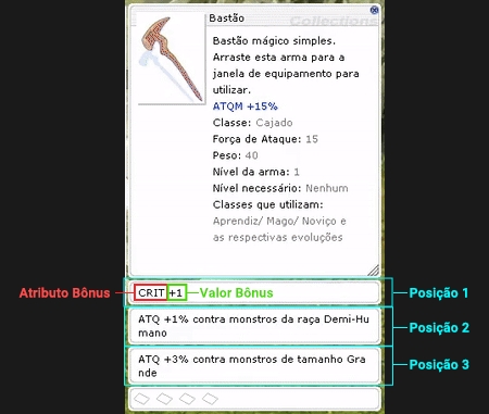 Armas, Armaduras, Sapatos e Capas: Recebem 3 bônus aleatórios.